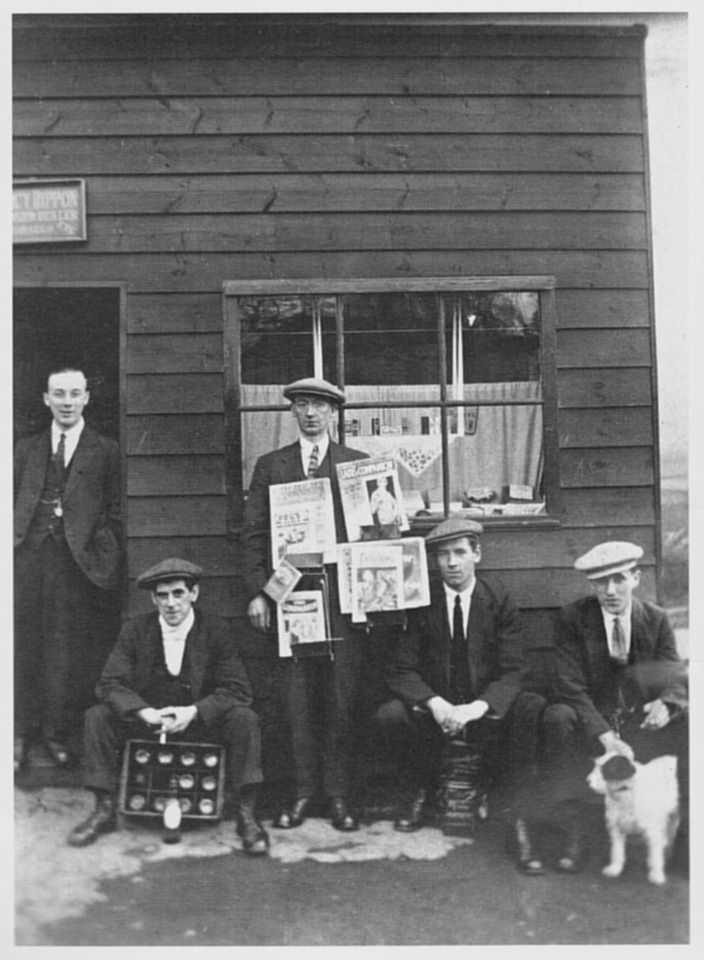 Herbert (second from left) with Reg and Percy Rippon and Fred Unwin outside Rippon's Shop Kiosk, Hackenthorpe.