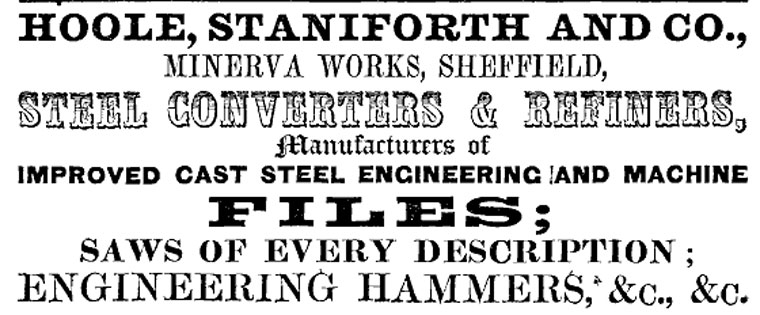 It seems that in 1850, Henry Hoole and Rowland parter ways with James Gray, in the London Gazette dated April 1st, 1850, there is an etry for March 12th ‘Henry Hoole, Rowland Staniforth and James Gray, Sheffield merchants and steel and file manufacturers so far as regards James Gray, debts received and paid by the remaining partners’