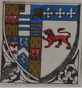 Crest: On a mound vert, a lion argent sejeant, langued gules.
